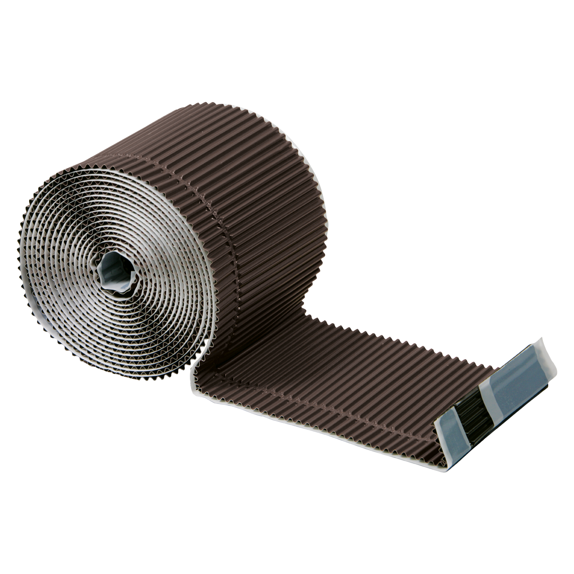 Hochflexible Anschlussschürze aus durchgängig plissiertem Aluminium zum Einfalzen an Anschlussblechen und Dachfenstern. Durch eine vorgefertigte Biegesicke wird ein sauberer Übergang vom Blechfalz zur Anschlussschürze erreicht, ohne die Plissierung zu beschädigen. Die Rückseite ist mit zwei Butylklebestreifen beschichtet, die als Montagehilfe beim Einfalzen und zur Abdichtung auf der Eindeckung dienen. Sie bietet einen dauerhaften Schutz bei jeder Witterung und erreicht mit einem Streckfaktor in Längsrichtung von 30 % eine optimale Anformbarkeit an die Eindeckung.