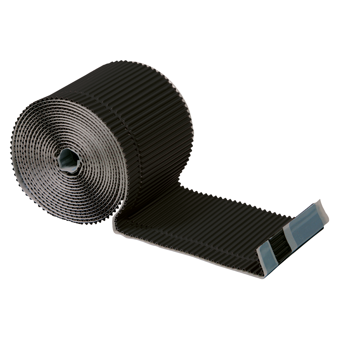 Hochflexible Anschlussschürze aus durchgängig plissiertem Aluminium zum Einfalzen an Anschlussblechen und Dachfenstern. Durch eine vorgefertigte Biegesicke wird ein sauberer Übergang vom Blechfalz zur Anschlussschürze erreicht, ohne die Plissierung zu beschädigen. Die Rückseite ist mit zwei Butylklebestreifen beschichtet, die als Montagehilfe beim Einfalzen und zur Abdichtung auf der Eindeckung dienen. Sie bietet einen dauerhaften Schutz bei jeder Witterung und erreicht mit einem Streckfaktor in Längsrichtung von 30 % eine optimale Anformbarkeit an die Eindeckung.