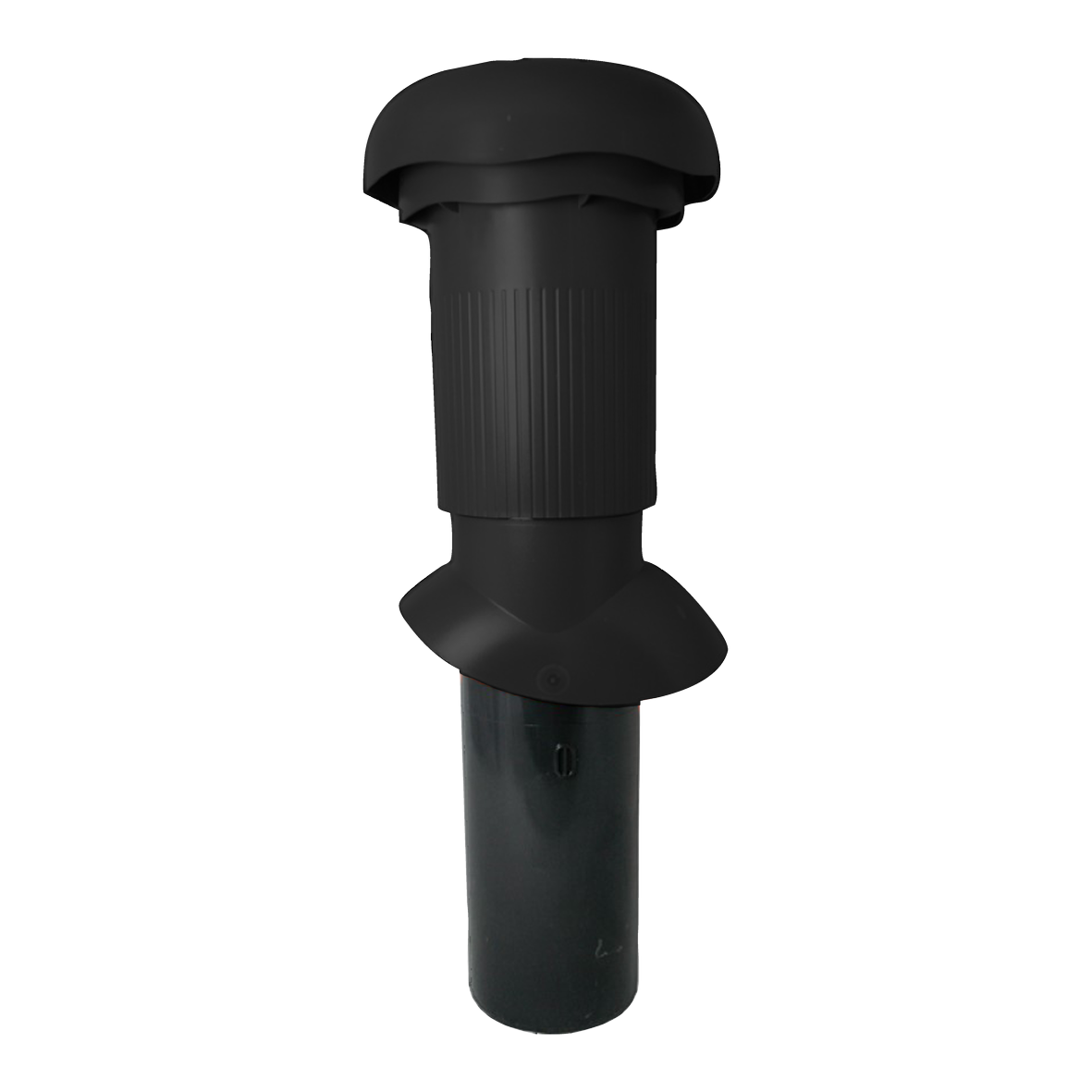 Sanitärlüfterrohr aus Kunststoff mit aerodynamisch optimierter Entlüftung durch Rohrgeometrie, Luftleitring und Regenhaube, reduziert Verwirbelungen auf ein Minimum und stellt eine effektive Abluftleistung insbesondere bei ventilatorunterstützter Abluft sicher.